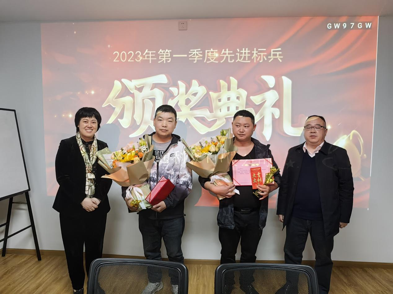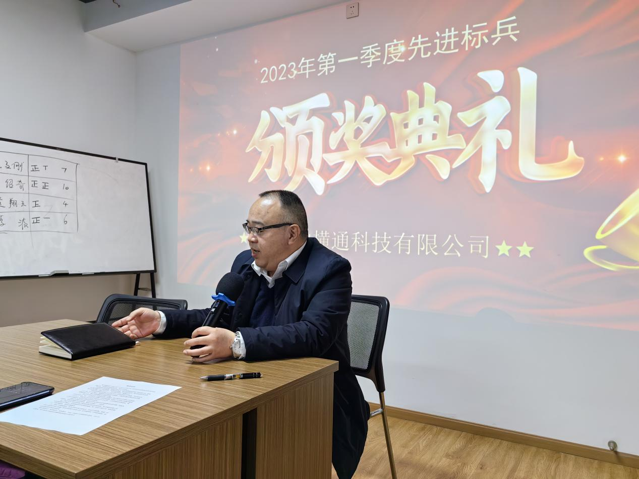經過激烈的現場投票后,陳文剛、唐紹奇榮獲中橫通2023年第一季度的先進標兵榮譽稱號,公司執行董事杜久彬先生、總經理劉永梅女士為他們頒獎并送上公司對他們的獎勵。臺上耀眼的燈光,臺下不間斷的掌聲,都是給他們最強烈的喝彩,以及最崇高的致敬!