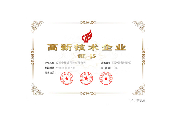 成都中橫通科技有限公司經過17年的發展,不斷開拓創新,追求卓越,于2020年成功通過國家高新技術企業認定。